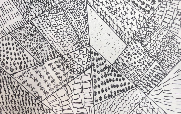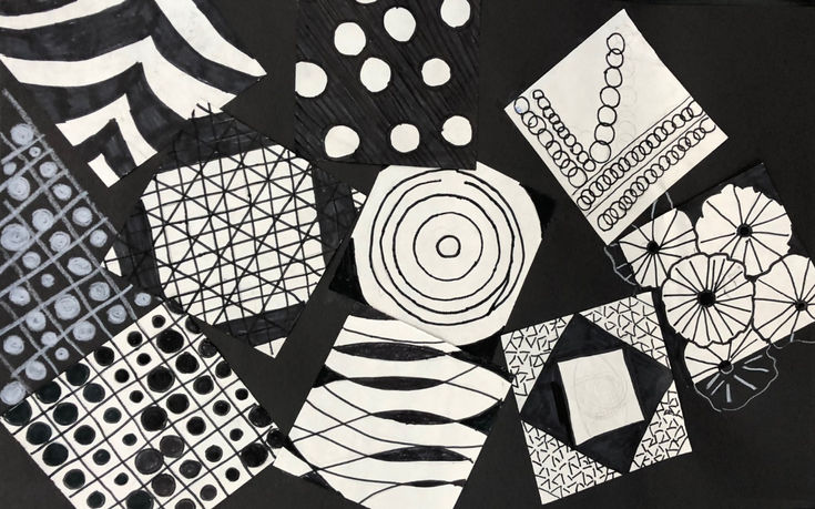 Students listened to various music and drew the shapes, lines, and colors that they felt represented the music.
